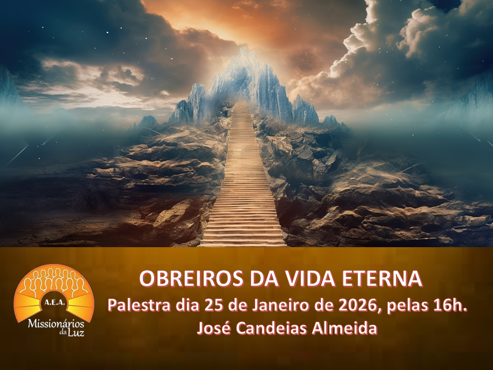 A palestra deste mês será conduzida pelo nosso dirigente José Candeias Almeida e o tema será: “Obreiros da Vida Eterna”.